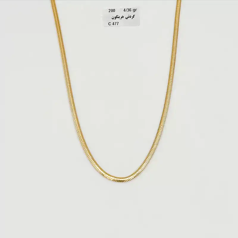 گردنبند هرینگبون؛ بافتی تخت و درخشان که استایل شما را با ظرافتی کلاسیک و شیکی ماندگار کامل میکند.